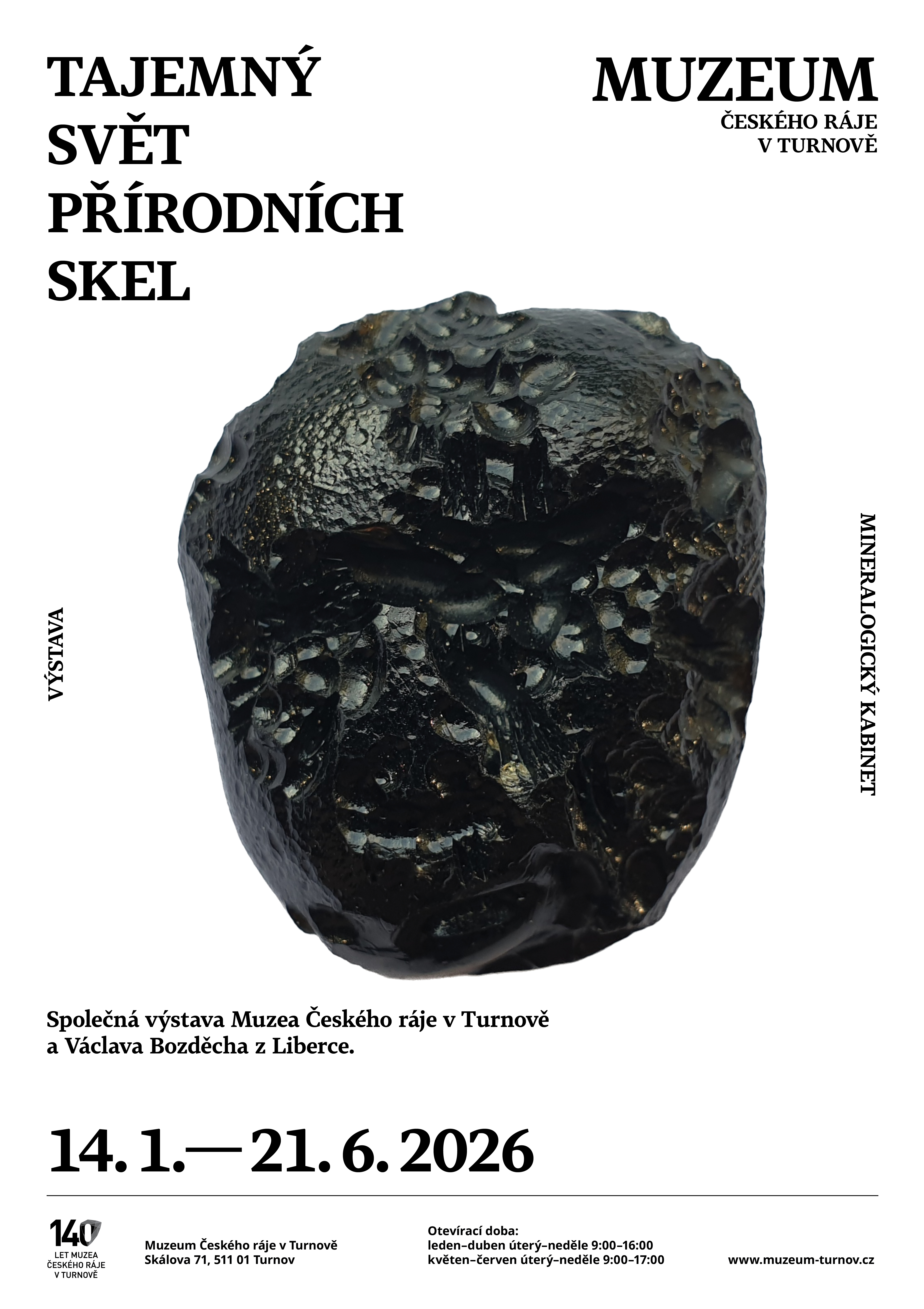 Turnov - Muzeum Českého ráje v Turnově ve spolupráci se sběratelem Václavem Bozděchem z Liberce srdečně zve na výstavu různých skel přírodního původu. Na výstavě budete moci spatřit velkou část jeho soukromé sbírky, ve které převažují skla impaktního původu, ale obsahuje také skla vulkanická a i skla, jejichž vznik vyžadují speciální podmínky jako např. výbuch atomové bomby. V době trvání výstavy se můžete těšit na řadu komentovaných prohlídek a zajímavých přednášek s odborníky.